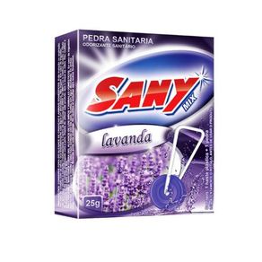 A pedra sanitária Sany é um produto utilizado para higienização e perfumação de banheiros. Com peso de 25g, é compacta e fácil de ser instalada no vaso sanitário.